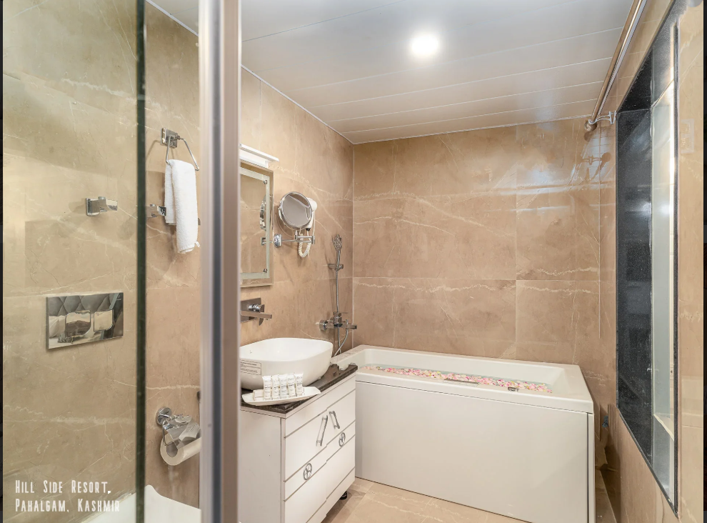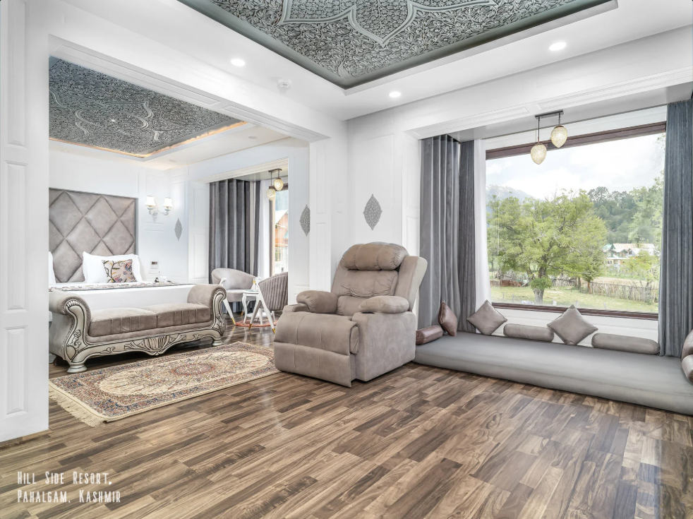 Nestled in the picturesque surroundings of Laripora on Golf Course Road, Hillside Resort & Spa Pahalgam is a luxurious 4-star property offering a perfect blend of comfort, elegance, and breathtaking natural beauty. Surrounded by lush green valleys, pine forests, and scenic mountain landscapes, the resort provides a peaceful retreat for travelers looking to experience the charm of Kashmir in a relaxing and refined environment.